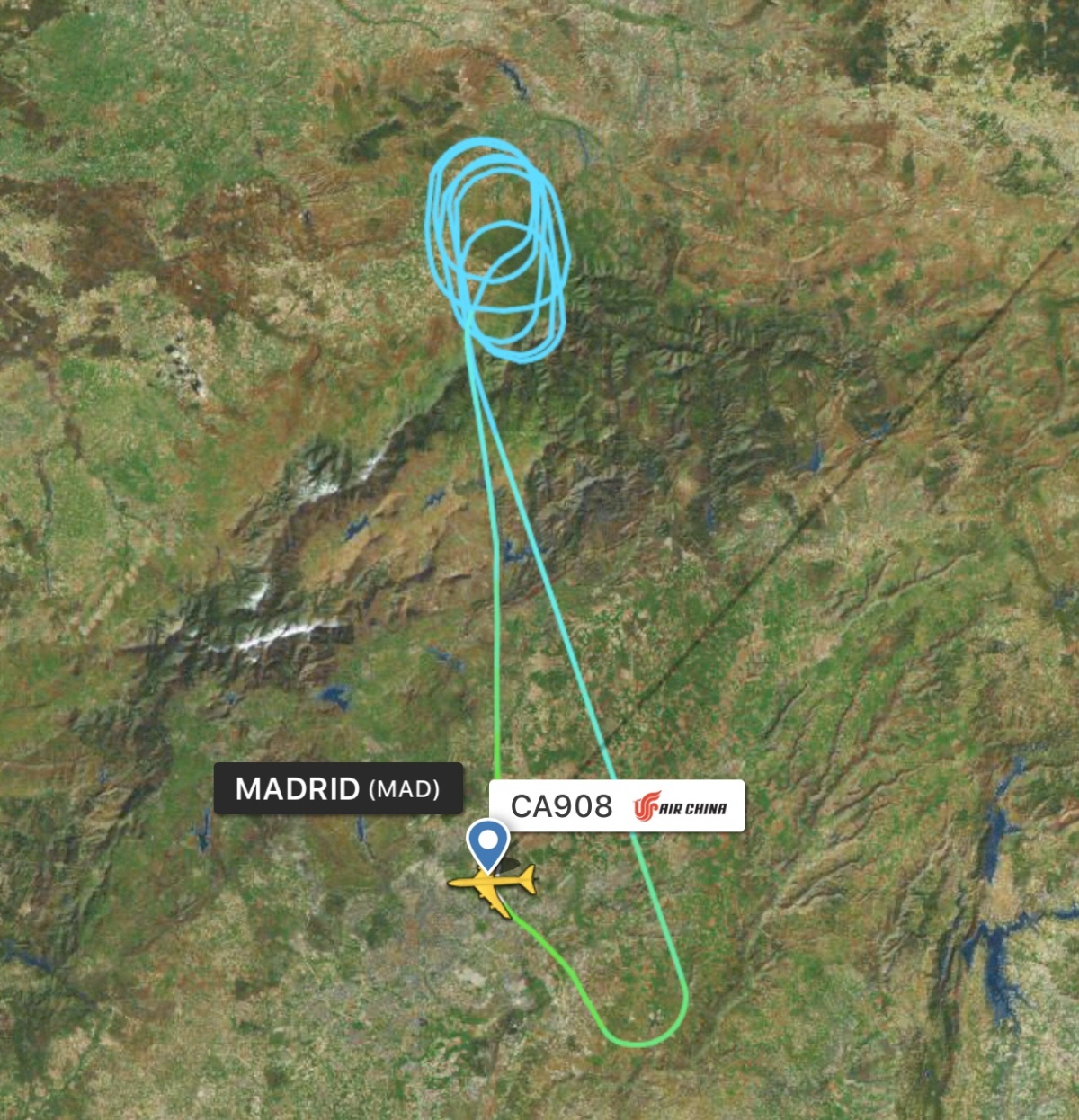 據悉,涉事航班為馬德里飛往北京的中國國際航空CA908。該航班於當日下午2時起飛,半小時後飛機遭到鳥擊,引擎出現機械故障,機長果斷決定返航。飛機在空中盤旋放油後成功降落於起飛機場。