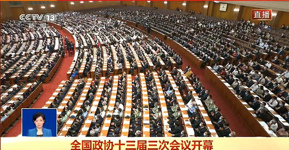 5月21日下午3時,全國政協十三屆三次會議在北京人民大會堂開幕,中共中央政治局常委、全國政協主席汪洋作全國政協常委會工作報告。