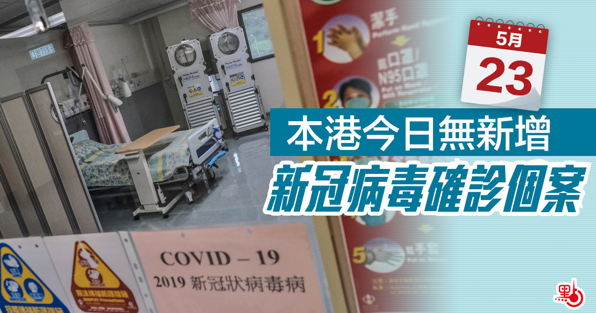 衞生署衞生防護中心公佈,截至今日(23日)下午4時,本港沒有錄得新增新冠病毒本地確診個案,現時累計個案仍為1066宗,包括1065宗確診個案和1宗疑似個案。