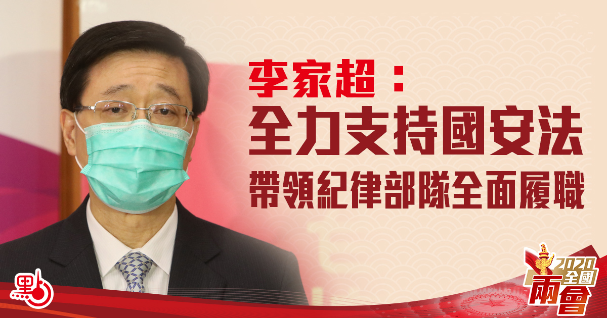 十三屆全國人大三次會議將審議建立健全香港特區維護國家安全的法律制度和執行機制的決定(草案)。香港保安局局長李家超今日(24日)表示,對全國人大的草案表示全力支持,並會帶領各紀律部隊全面履行應有職責,竭力維護國家安全,讓香港重回正軌,確保香港長期繁榮穩定。