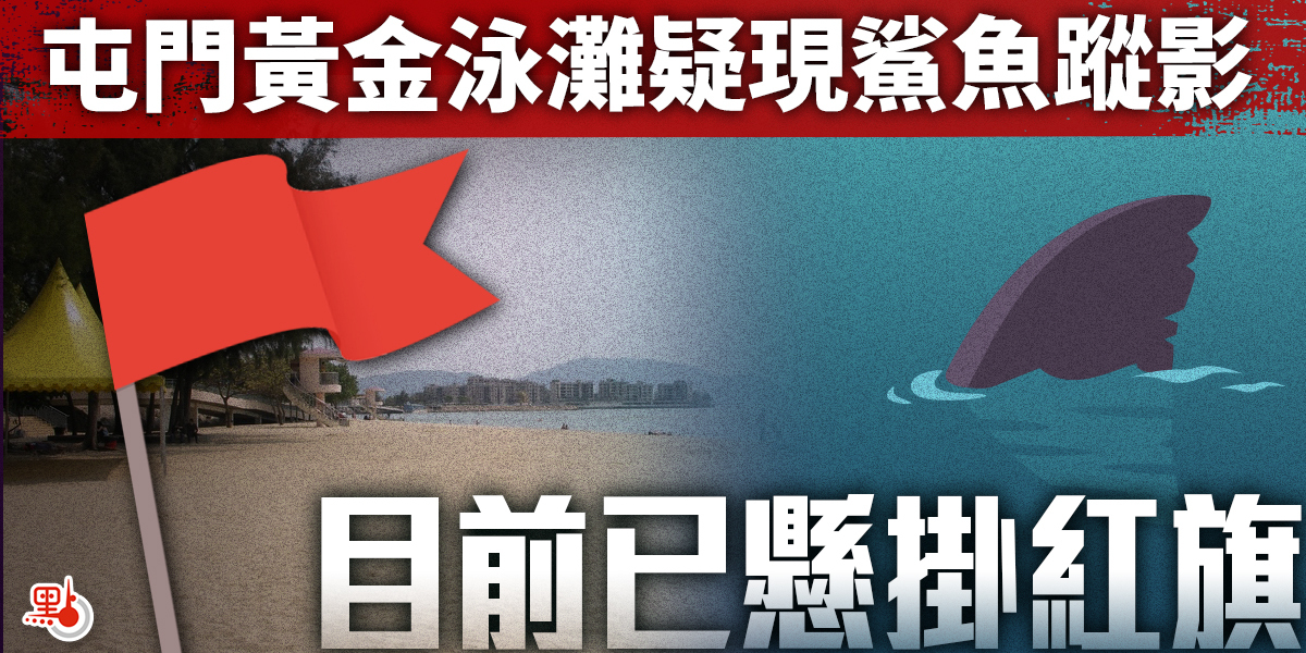 今日(2日)早上9時許,屯門黃金泳灘有救生員在瞭望台視察時,發現防鯊網內出現懷疑鯊魚蹤影,隨即通知相關部門,及廣播通知泳客盡快返回岸上或登上浮台暫避,目前泳灘已懸掛紅旗。