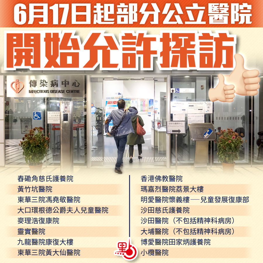 醫院管理局(醫管局)自1月25日啟動緊急應變級別,公立醫院一直全面暫停探訪安排。醫管局今日(10日)宣布,下周三(17日)開始在部分非急症醫院實施特別探訪安排,允許家屬探訪病人。