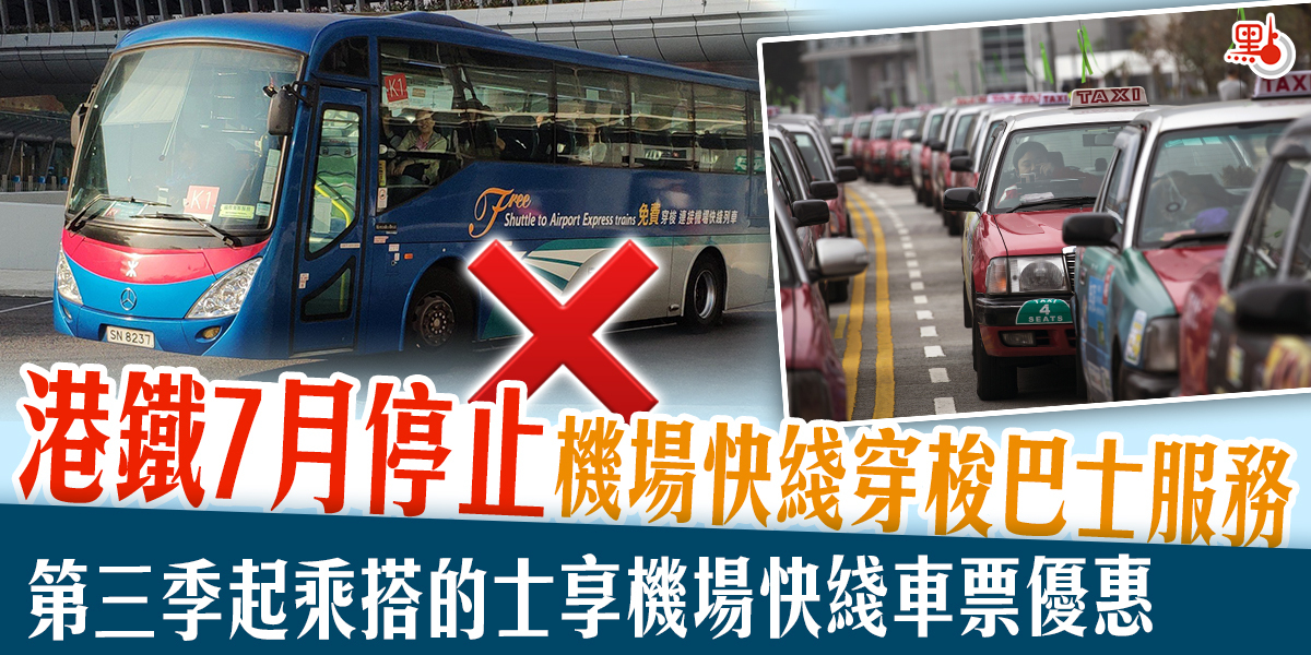 港鐵今日(16日)宣布,機場快綫穿梭巴士服務客量持續偏低,經過審慎考慮後,將於6月30日外判承辦服務合約完結後,停止提供穿梭巴士服務。因疫情影響,該服務已由今年4月10日起暫停。