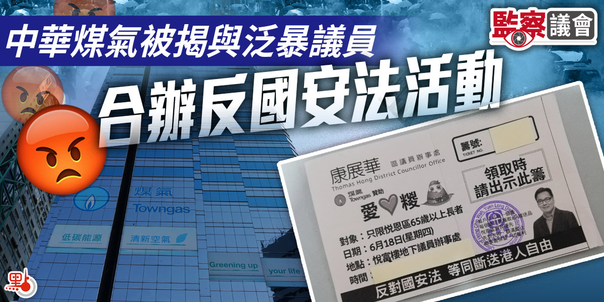 繼早前有報道指香港賽馬會疑金援黑暴議員,本網收到讀者報料,元朗區泛暴派議員康展華與香港中華煤氣公司合辦端午節活動,活動不單帶有政治色彩,而活動的宣傳品中更高調表示「反對國安法」,令人質疑煤氣公司的政治立場。