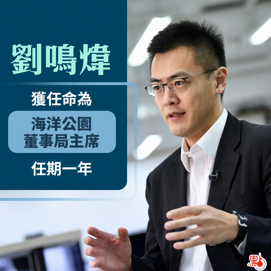 特區政府今日(26日)宣布,行政長官林鄭月娥已委任劉鳴煒為海洋公園公司董事局主席,並再度委任鄭詩韻、龔楊恩慈和吳永順三位非官守成員,任期均為1年,由今年7月1日起至2021年6月30日止。