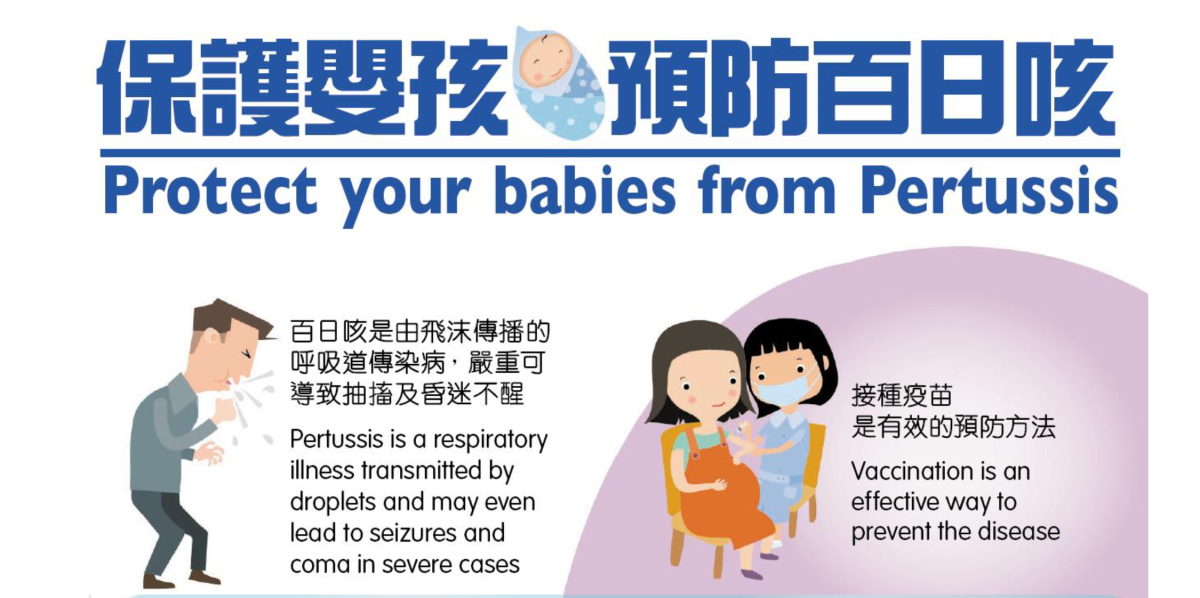 衞生署指,鑑於近年本港百日咳呈報個案有所上升,疫苗可預防疾病科學委員會去年建議懷孕婦女,無論過往曾否接種百日咳疫苗或曾否感染該病,在每次懷孕時均接種一劑無細胞型百日咳疫苗作為恆常產前護理的必要部分,孕婦將在分娩前製造並傳遞抗體予胎兒,為防止嬰兒感染百日咳提供直接保護。