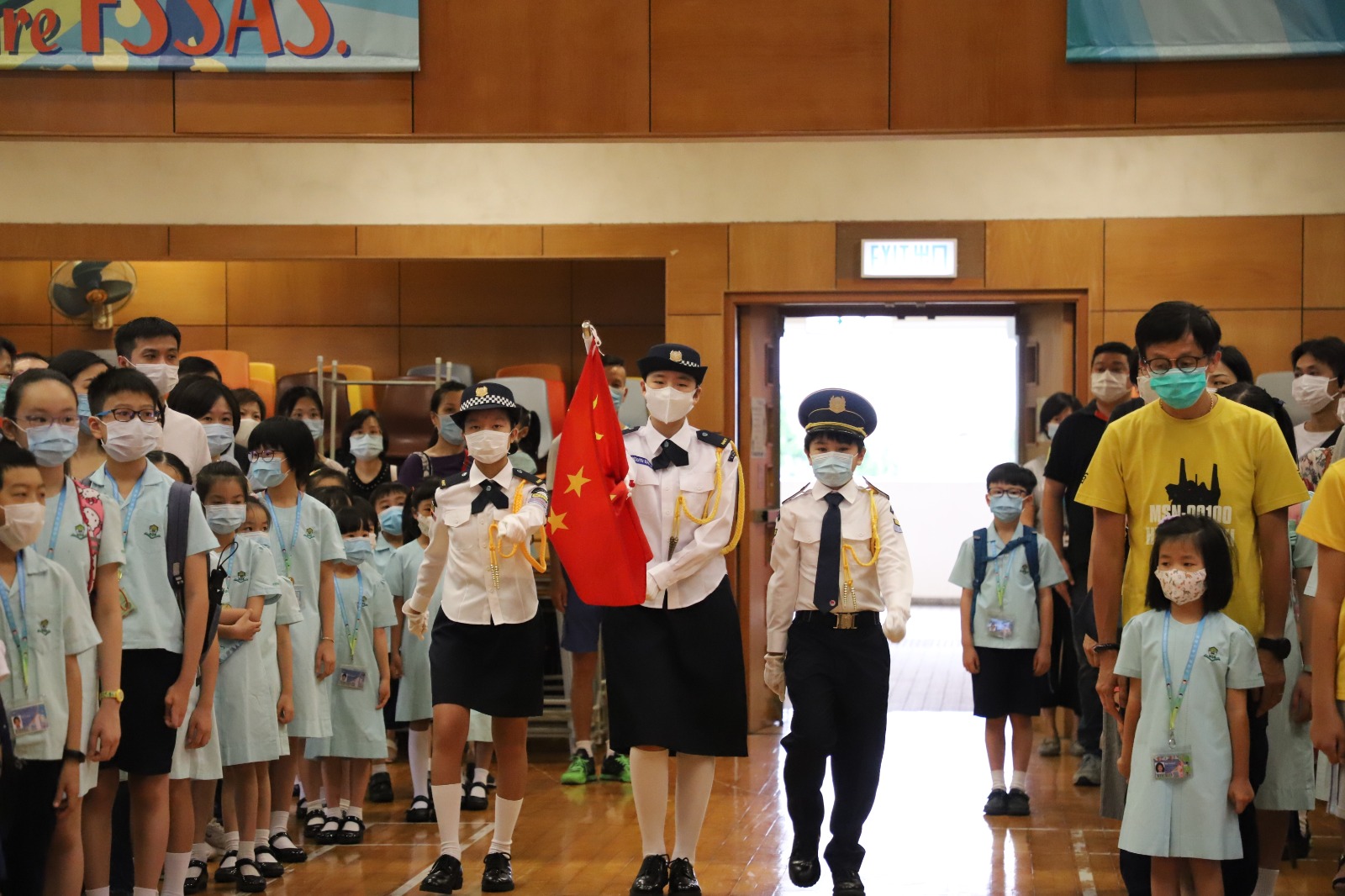 今日(1日)是香港回歸祖國23周年的紀念日,「慶香港回歸 賀國安立法」的條幅隨處可見,不少學校舉行隆重莊嚴的升旗禮,通過升國旗、唱國歌等活動加強學生的愛國愛港情懷。位於油塘的福建中學附屬學校今日上午舉行升旗禮,讓學生現場接受了一場生動的愛國教育課。(受訪者供圖)