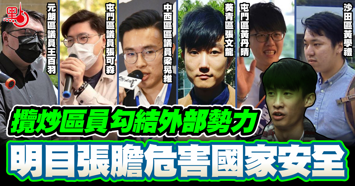 在香港國安法通過後,有26名攬炒派區議員竟與外部勢力聯署所謂的「捍衛香港自由自治國際宣言」,聲言要因香港國安法「譴責」全國人大常委會,並呼籲國際社會重新審視對華政策,聯手對中國「侵蝕香港自由同自治」實施制裁,如「懲罰有份打壓香港人權、自由同法治嘅中國同香港官員、其他人或者組織,包括實施入境限制、列入不受歡迎名單、凍結資產,以及限制第三方同呢啲受制裁者進行交易或其他活動等等」,並邀請他們委派「獨立監察員」到香港云云,明目張膽勾結外國勢力。香港國安法打擊的四類罪行中,有一項正是勾結外國或境外勢力危害國家安全的犯罪行為。