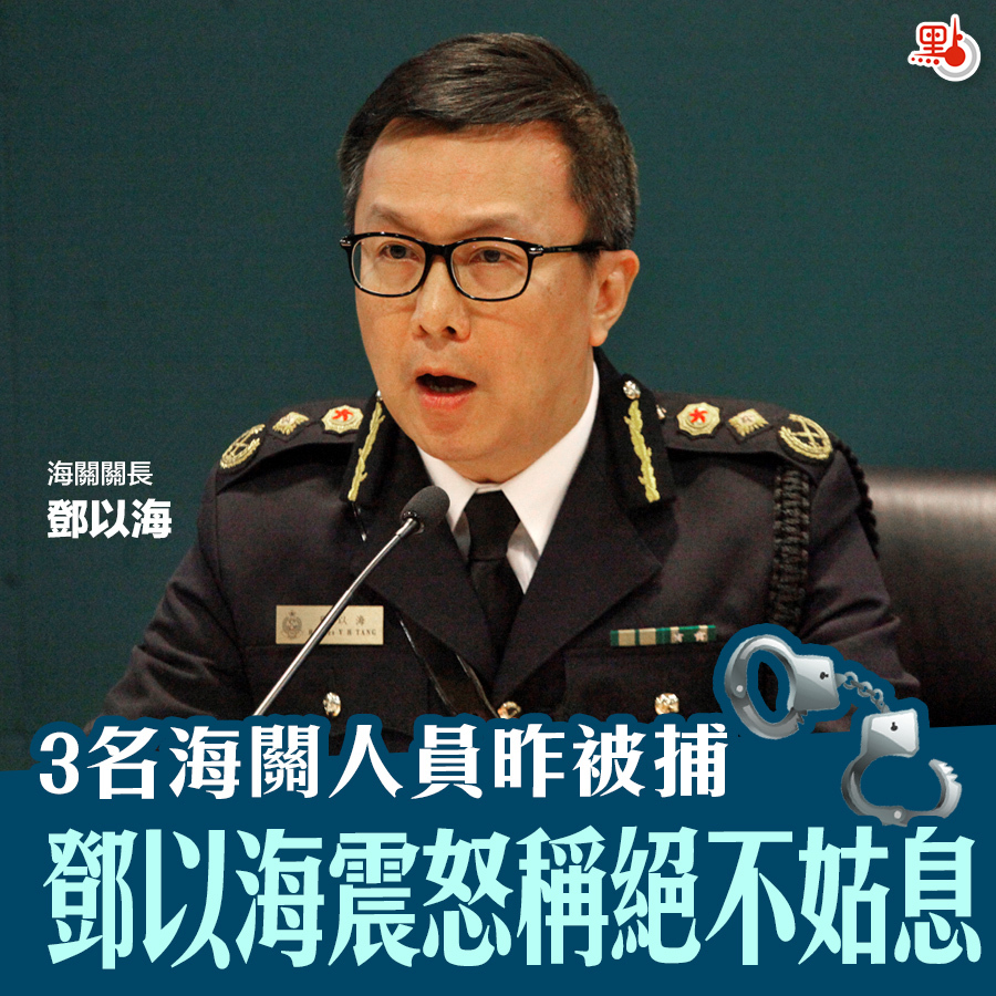 香港國安法正式實施,然而昨日(1日)在港島區仍有人群非法集結叫囂、縱火堵路,甚至有公共設施及多間商鋪被暴徒破壞。警方果斷執法,逾370人被捕,據悉當中包括3名海關人員。海關關長鄧以海今日(2日)表示對事件感到震怒,強調紀律部隊人員必須守法,絕不姑息違紀違法人員。