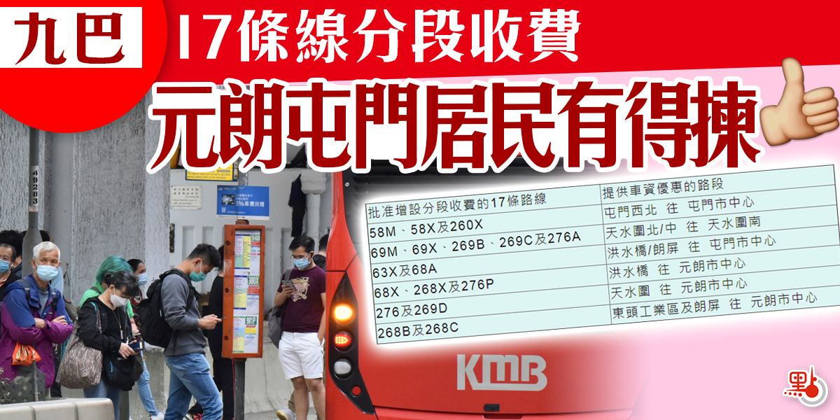 獲批准增設分段收費的17條路線包括:58M、58X、260X、69M、69X、269B、269C、276A、63X、68A、68X、268X、276P、276、269D、268B、268C。