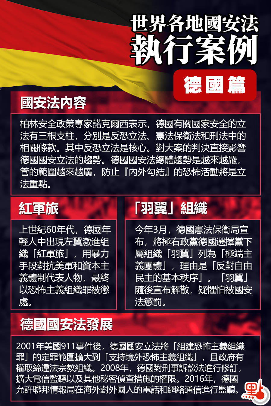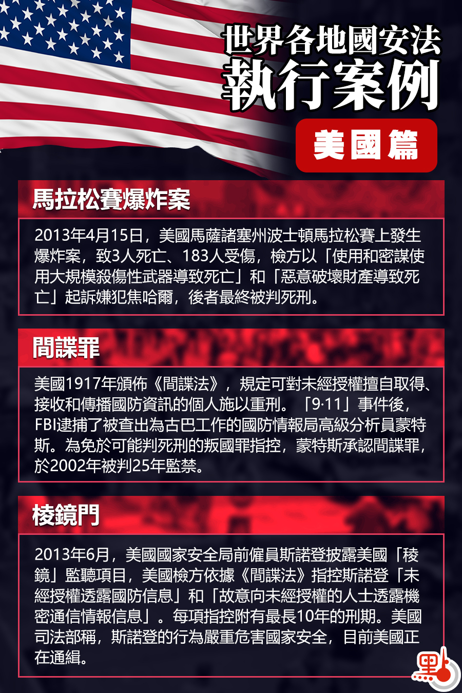 香港國安法於6月30日刊憲公布,並於當晚11時生效。立法旨在防範、制止和懲治四類嚴重危害國家安全的罪行,包括分裂國家、顛覆國家政權、恐怖活動以及勾結外國或境外勢力危害國家安全。縱觀世界其他國家和地區,包括美國、德國、西班牙、法國等地,對違反國安法的罪行判刑都很重,監禁25年甚至判處死刑。一起來睇下!