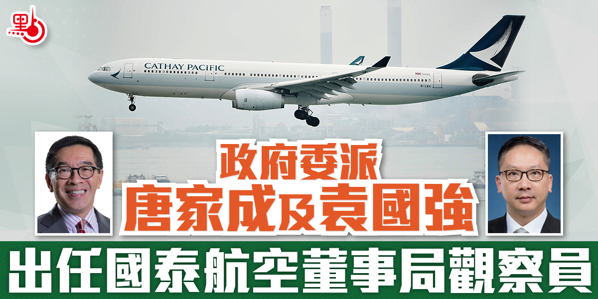 特區政府今日(14日)宣布,根據政府投資國泰航空有限公司的相關協議,委派教資會主席、特許會計師唐家成及前律政司司長、資深大律師袁國強由即日起出任國泰航空集團董事局觀察員。