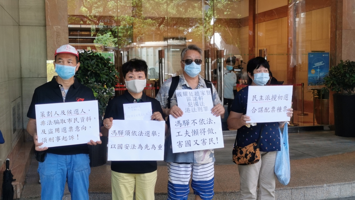 香港立法會換屆選舉將於9月舉行。民間團體「市民自發群組」數名成員今日(15日)到選舉事務處請願,指攬炒派舉辦的所謂「初選」違規犯法,促選管會主席馮驊嚴正處理。
