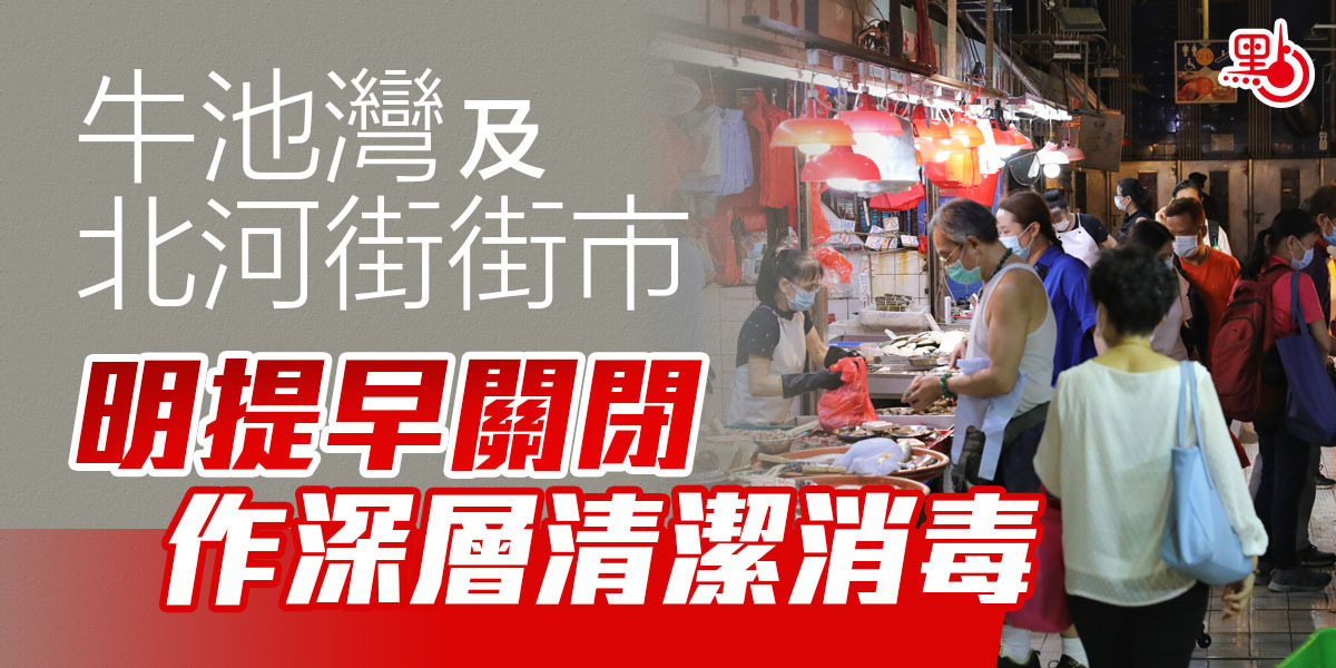食環署今日(16日)宣布,因應近日新冠肺炎確診個案與牛池灣街市及北河街街市有關連,為保障街市檔戶及市民的健康及安全,兩個街巿將於明日(17日)提早一小時於下午7時關閉,以進行深層清潔消毒工作。