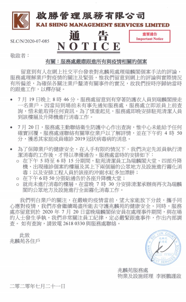 兆麟苑居民陳小姐接受本網記者訪問時表示,甄霈霖的行為令人反感,自己及其他住戶們本身對疫情已經十分留意,自己亦在不同的渠道中得知大廈有人確診,管理公司本身已在大堂張貼通告,甄霈霖到場要張貼海報是「多此一舉」。