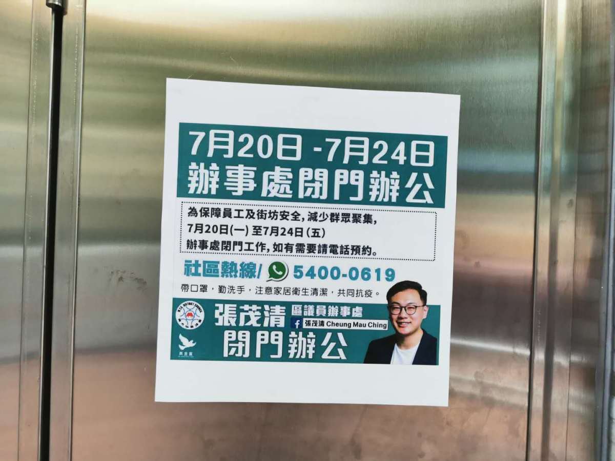本網記者亦到張茂清議員辦事處門口,發現辦事處未有開門,門外張貼關門的通告。