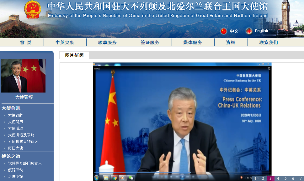 中國駐英大使劉曉明30日在之外記者會上表示,中英關係近日面臨嚴峻形勢,責任完全在英方,批評英國無端指責「香港國安法」,妄稱中方違反《中英聯合聲明》是完全錯誤。