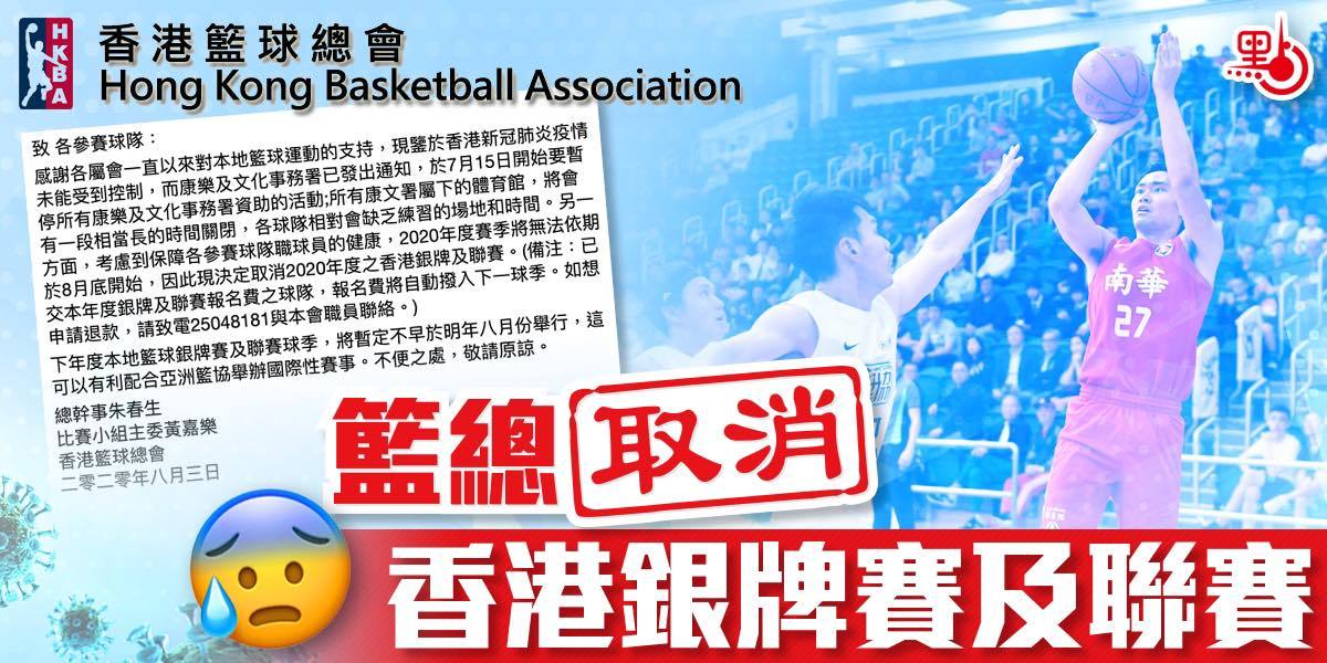籃總指康文署已發出通知,於7月15日開始要暫停所有資助的活動,加上所有康文署屬下的體育館將會有一段相當長的時間關閉,各球隊相對會缺乏練習的場地和時間。另一方面,考慮到保障各參賽球隊職球員的健康,2020年度賽季將無法依期於8月底開始,因此現決定取消2020年度之香港銀牌及聯賽。籃總表示已交本年度銀牌及聯賽報名費之球隊,報名費將自動撥入下一球季。