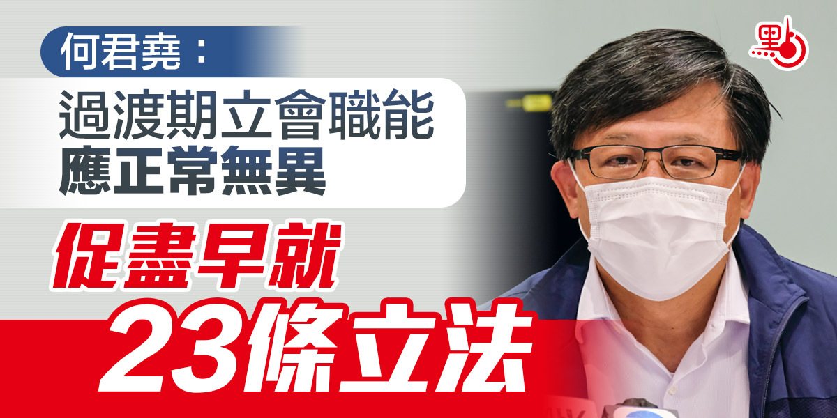 政府押後9月立法會選舉一年,全國人大常委會將就立法會「真空期」作出決定。立法會議員何君堯今日(5日)表示,支持推遲立法會選舉決定,指未來一年的過渡期立法會,應等同正常立法會,功能與職能應無異,並應盡早就《基本法》23條立法。