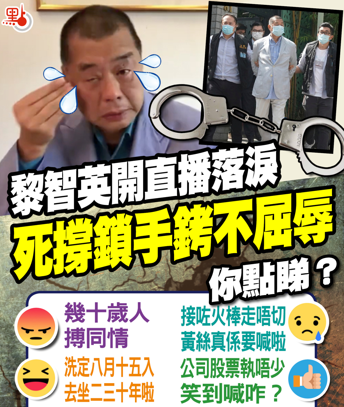 他憶述,被捕期間見到警方國安處的人員都是港人,因此認為現自己不會被送返內地。對於一班「黃絲」近日響應所謂的「盡買」,推高《蘋果日報》銷量,黎智英更再度硬咽回應。梗係啦,唔使乞訂閱,都有水魚送上門喎,仲唔開心都喊咩!