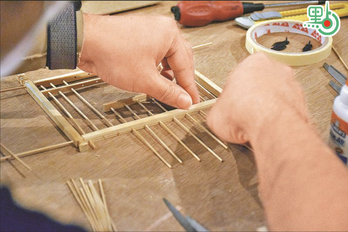 製雀籠相框需要專注及有耐性,學生需先用小刀及銼刀雕出相框兩邊柱子底部的花紋,再利用入榫技術,即竹條與竹條之間用凹凸處接合。GoHung 解釋,入榫是製雀籠的重點,亦是中國傳統建築的常見方式,這種技術令建築更牢固,日本也常見入榫樓宇防地震。有專程來學製相框當女友生日禮物的Tommy 指,最難的是雕柱子底部花紋,因為竹條很細,花紋亦需很精細,故要有耐性、懂得用刀,如太大力就會出界。GoHung 還指導Tommy 在柱子的頂部,雕上他及女友英文名的首字母,變成屬於二人的專屬回憶。