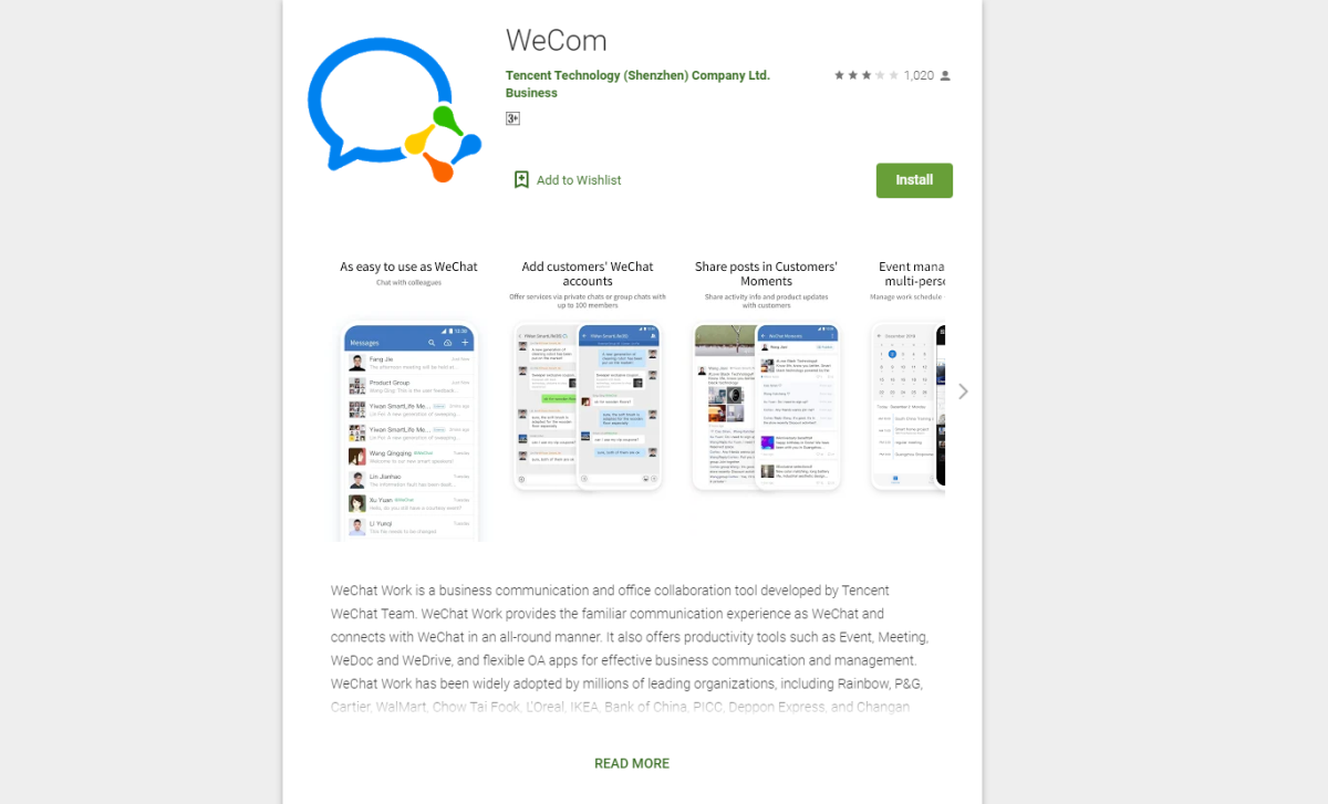 微信捲入中美角力風波,海外版企業微信的英文名,已經由「WeChat Work」轉為「WeCom」,蘋果和谷歌應用程式商店已作調整。