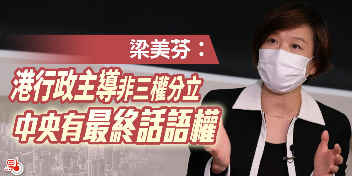 基本法委員會委員、身兼大律師的經民聯立法會議員梁美芬今日(1日)表示,香港回歸前後都是行政主導,不可用「三權分立」來形容。她強調,三權須在「一國兩制」和高度自治的基礎下運行,且一定涉及中央與地方的關係,例如基本法規定如果牽涉重大行政決定,中央有最終話語權。