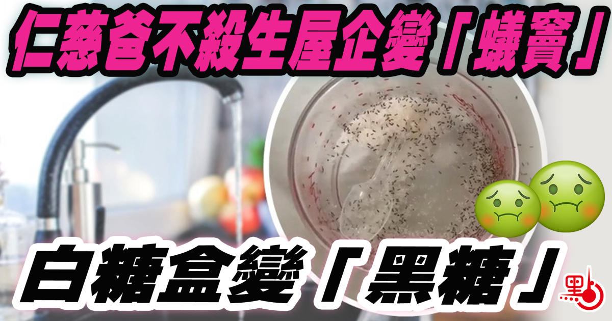 有網民在「Day Day Explode日日爆」Facebook專頁發文,指家中上月有蟻患,但一直找不到源頭,時不時會見到蟻路,每日都要用漂白水抹。上星期打算煮早餐,落糖嘅時候就奇怪點解啲糖識郁?之後一打開裝糖嗰盒驚嚇嘅事情來了,只見裏面爬滿螞蟻,爸爸仲話放過啲蟻唔好殺生,最後造成全屋蟻患「大爆發」。該網民表示,每日都用檸檬水和白醋抹,但永遠都唔知邊度走出嚟。近日更發現螞蟻食了一包山楂餅。最無奈的是,螞蟻永遠不知道從哪裏出來,已經蔓延全屋。
