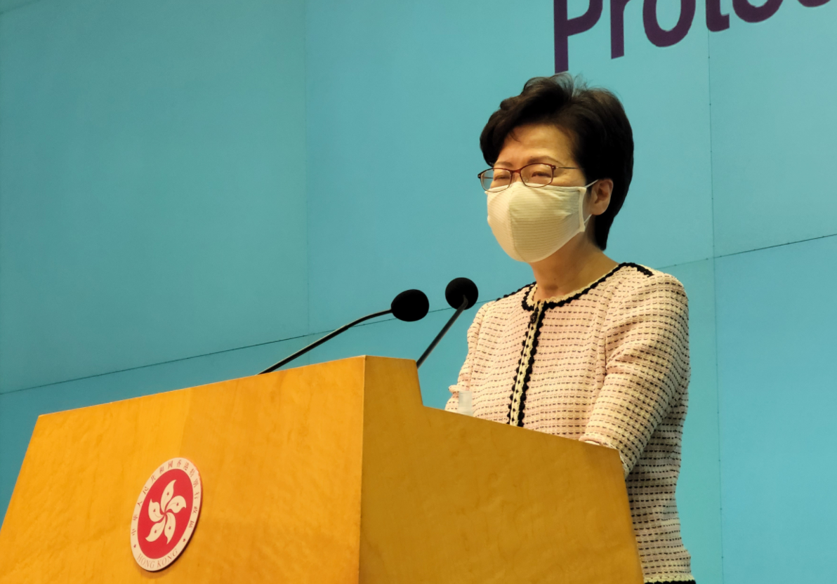 行政長官林鄭月娥今日(8日)出席行政會議前見記者,被問到「人民力量」副主席譚得志被捕一案時表示,林鄭月娥說,由執法引致的檢控,不應由行政長官去評論。林鄭月娥表示,假如是言論自由受法律限制的部分,會有特定情況,肯定不會因為批評行政長官,就會違反法律上限制言論自由的情境。