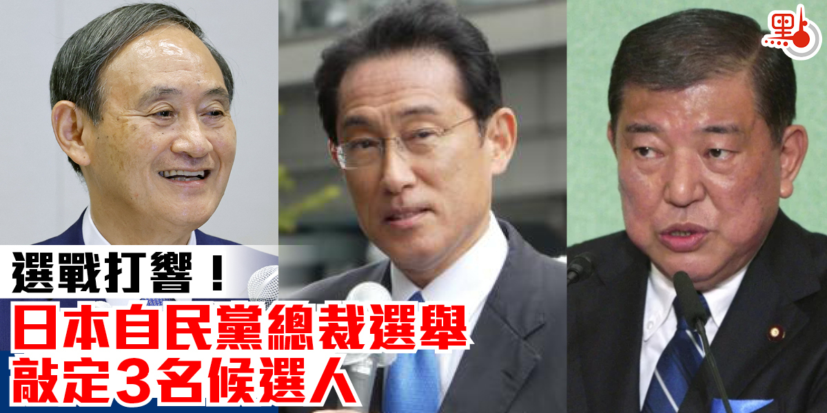 今日(8日)上午,日本自民黨總裁選舉發布公告,確定自民黨前幹事長石破茂、官房長官菅義偉和自民黨政務調查會長岸田文雄3人為候選人。3名候選人將於今日下午舉行演講會和聯合記者會,發表政見強調自己的主張。