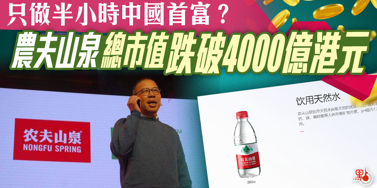農夫山泉今日(8日)在港交所掛牌上市,開盤時每股39.8港元,市值一度達4400億港元,董事長鍾睒睒一度成為中國首富,但收盤時回到33.1港元。