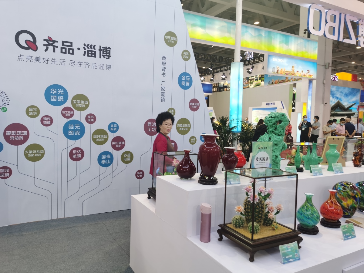 在近千平方米的沿黃文旅展區,沿黃9省區以組團參展的形式,再現九曲黃河古今風情。藝術皮畫、陶瓷、玉石等文創產品和旅遊商品展示內蒙古大美草原風光;龍鳳呈祥系列文創產品、牆飾、梳子及眾多飾品呈現青海別樣的風土人情。