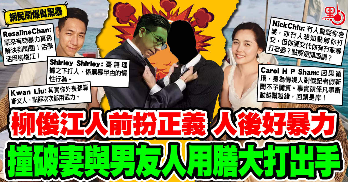 形象急速插水的柳俊江昨晚(18日)於社交網站Facebook發「聲明」速速「補鑊」,「承認當晚的衝突出於自己的誤解及衝動」、「深深為自己的行為致歉」,又表示「對無辜受牽連的太太以及其他人士致歉」云云。 但網民就唔多 buy 佢份「聲明」, 話 「Shirley Shirley:毫無理據之下打人,係黑暴的慣性行為。」「Kwan Liu:其實你外表都算斯文人,點解次次都用武力。」「NickChiu:冇人質疑你老婆,亦冇人想知點解你打交,但你要交代你有冇家暴打老婆?點解避開唔講。」