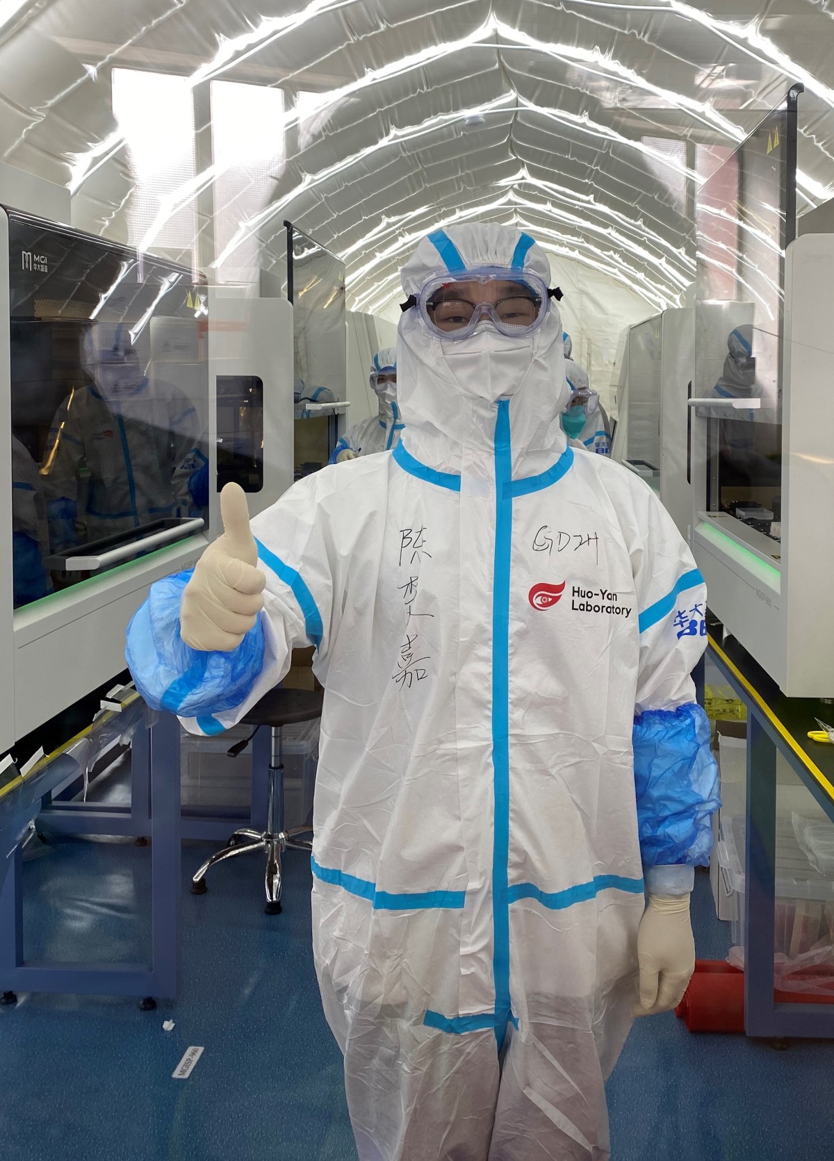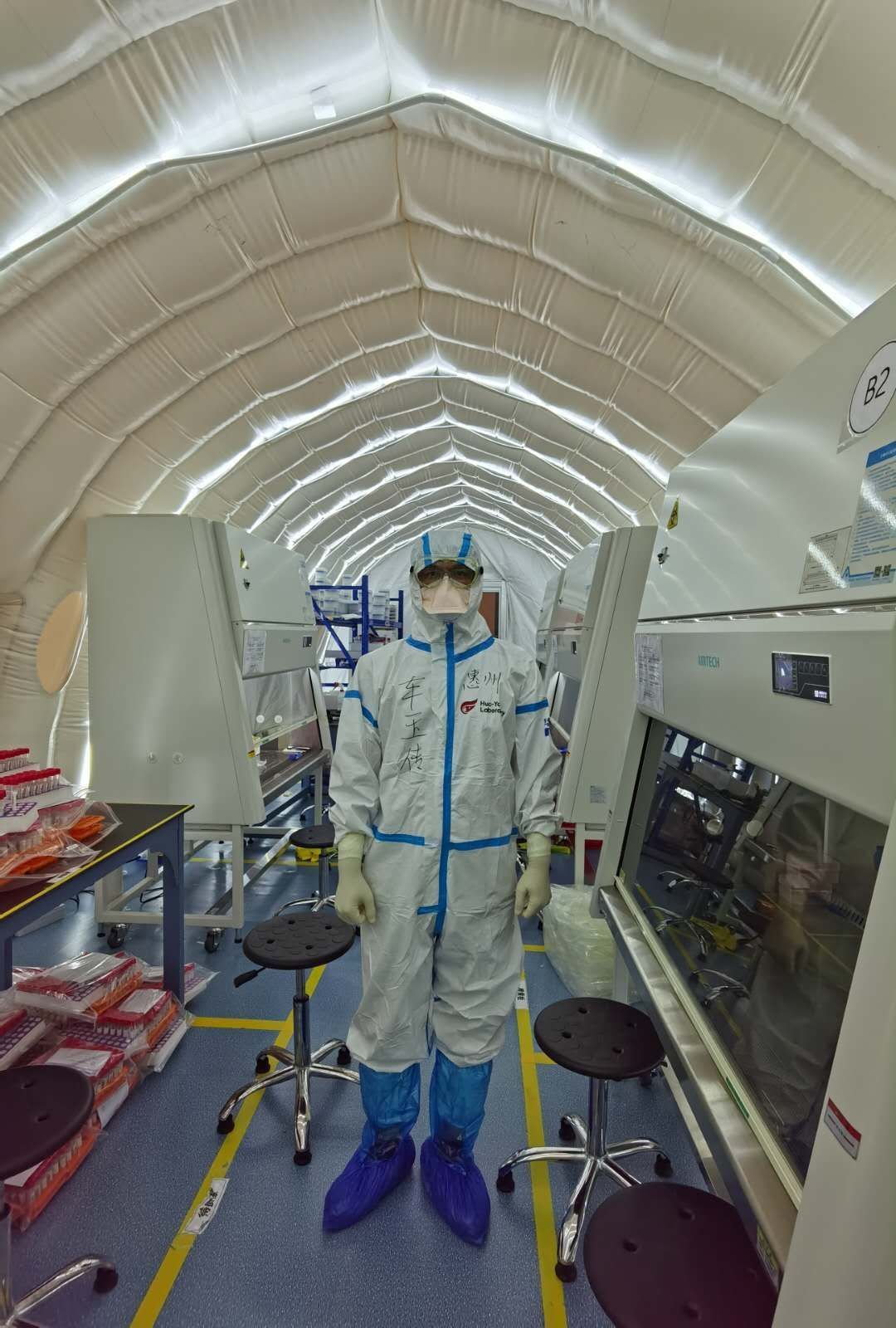劉欣(廣州市胸科醫院):這樣的工作強度超過任何的工作經歷,但我最大的自豪就是接收登記了氣膜實驗室的第一和最後樣本運輸箱,順利完成工作,並且隊員無病無傷。