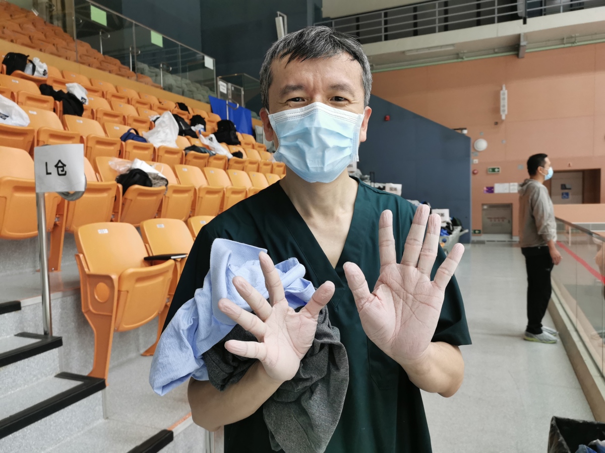 鄭偉明(廣東省人民醫院南海醫院):對於這次的任務,是遇到一些困難的。首先質疑聲,不過這根本影響不了我們,已到不惑之年,對於各種聲音已懂得如何面對,只要認為是正確的,認真專心去做就行了。最大的困難反而是身體上面的,一開始就進入連續的12小時夜班高強度工作,真的是身心疲憊。我所在的是取樣倉,是全流程的「限速」環節,每天能做多少,決定了當天的檢測量。從第一晚夜班開始磨合,到第三晚全倉基本都達到了全速,後面的日子是越做越起勁,大家基本都保持每櫃取樣4000份左右了。這樣一方面精神上是亢奮的不知倦,另一方面12小時的夜班高強度作戰,加上負壓倉對呼吸的影響,身體上是很疲憊的,早上下班後那種倦意會將整個人弄得無精打采,勉強吃過早餐、洗完澡就立刻睡覺,通常午餐也省了,能一覺睡到晚餐時間還不錯,因為入夜後又是一番苦戰。