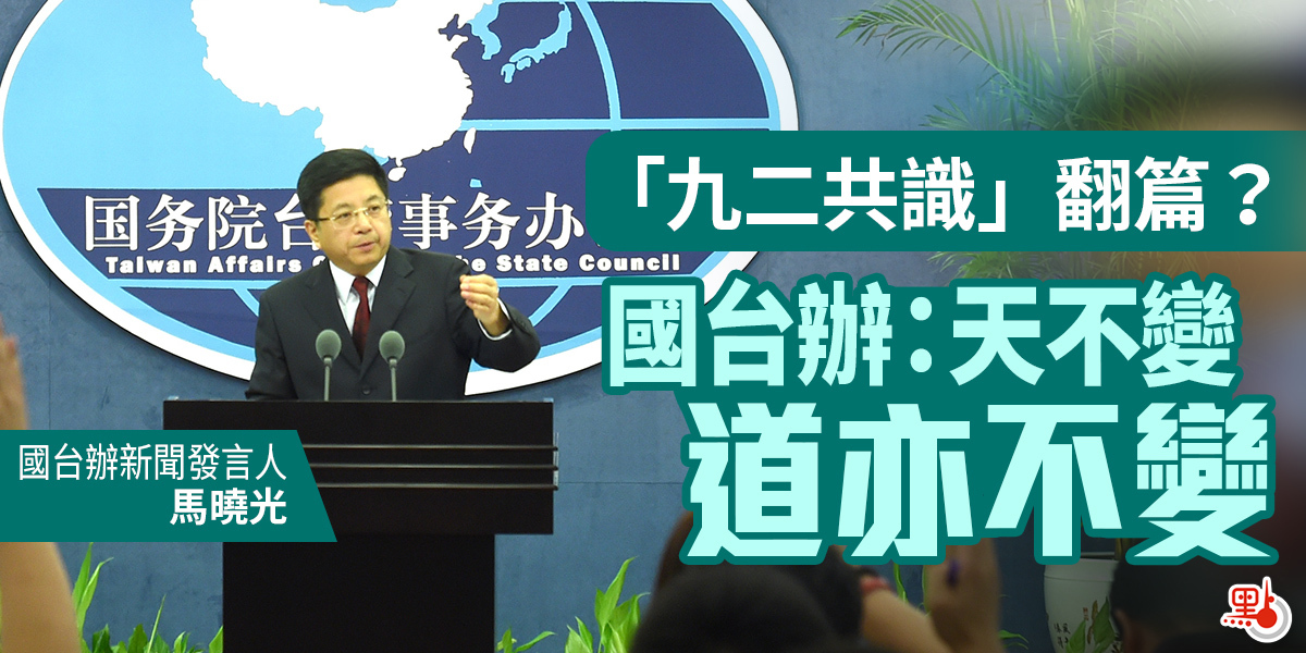 針對台陸委會稱「九二共識」已經翻過兩岸歷史一頁的有關說法,國台辦發言人馬曉光今日(30日)在例行記者會上回應稱,天不變、道亦不變。「九二共識」是推動兩岸關係和平穩定發展的共同政治基礎,任何人、任何勢力都不可能將「九二共識」翻過去,在過去、現在和將來,都是如此。