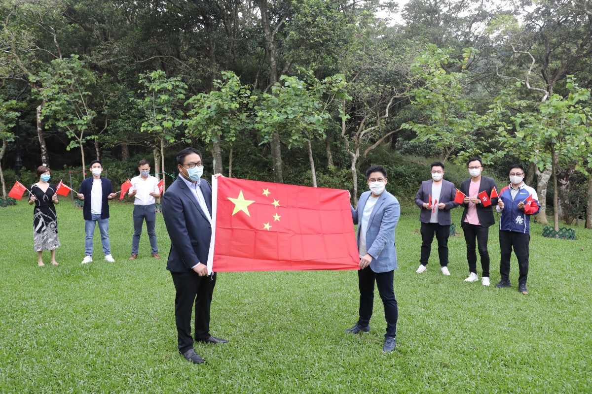 適逢國慶前夕,多位港區全國青聯委員今日一同登上太平山頂的「青年同心林」,於山林之間不斷揮舞手中的國旗和香港特區區旗,恭賀祖國生日。鮮紅的旗幟迎風飄揚,與巍峨的太平山風景融為一體,場面十分壯觀。