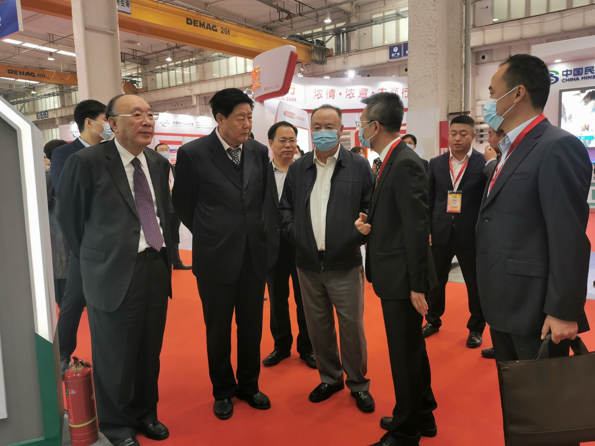 第九屆、十屆、十一屆全國政協副主席白立忱(前排中),中國中小企業協會會長李子彬(前排左二),中國國際經濟交流中心副理事長黃奇帆(前排左一)調研交易會展區。(點新聞記者 張帥攝)