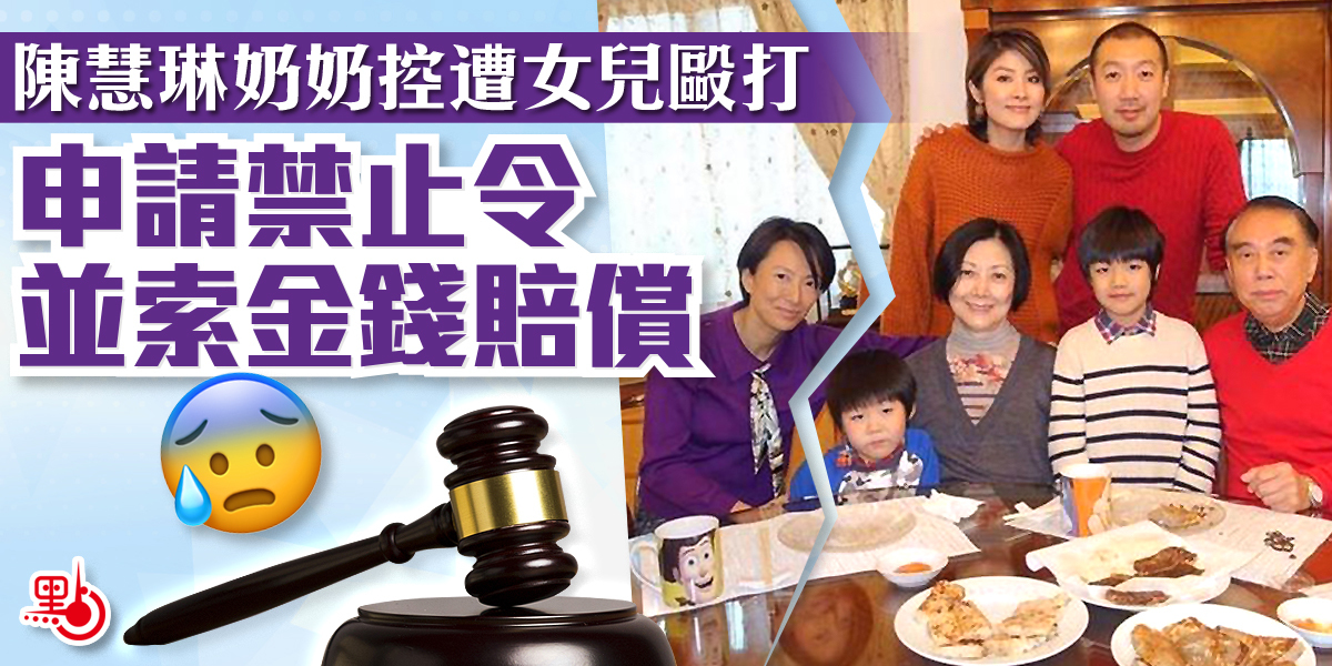 藝人陳慧琳的奶奶沈靜於上周五(9日)入稟高等法院申請禁制令,指自己由2017年起,多次遭女兒劉建芝威嚇及襲擊,因此要求法庭頒令禁制其女兒劉建芝接近其寓所的50米範圍,亦禁止女兒直接或間接接觸及威嚇她、丈夫劉基惠與三名家傭。