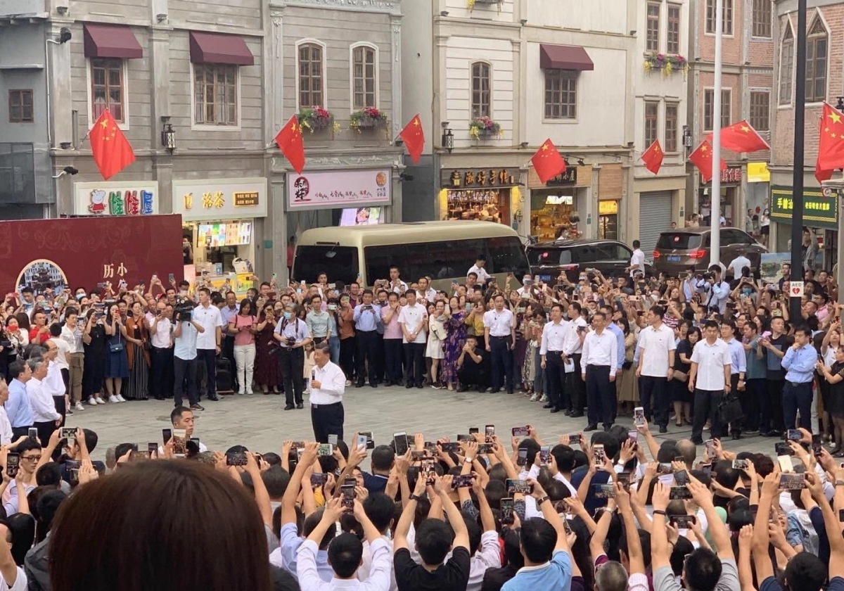 「主席好!」「汕頭人民歡迎您!」這一天,習近平主席視察的汕頭小公園開埠區成為潮汕人民關注的焦點。記者從現場街坊拍攝的視頻看到,小公園開埠區涼亭翼然,插在騎樓上的五星紅旗隨風飄揚,眾多市民揮舞著小旗幟,沿街夾道歡迎,歡呼聲此起彼伏,熱鬧非凡。