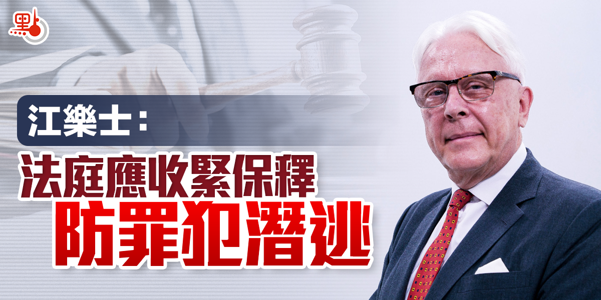 12港人逃犯涉潛逃台灣被廣東海警拘捕後正於深圳扣押待審。前刑事檢控專員江樂士昨日(18日)接受專訪時表示,這是一個令人擔心的正在演變的行為模式,且多國暫停引渡香港逃犯,將如磁鐵一樣吸引更多本地罪犯棄保潛逃。江樂士強調,法庭應考慮收緊保釋條件,建議要求高潛逃風險個案的被告交出旅遊證件、增加擔保人數目和保釋金額,甚至參考加拿大等國使用電子追蹤器。
