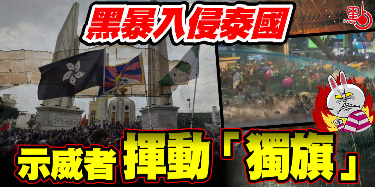 泰國連日發生多場大型示威,最開心的莫過於是香港的攬炒派。網上流傳片段顯示,示威者昨日在市中心勝利紀念碑集會時,一度以泰語高喊「香港是國家,還香港獨立」口號,更高舉黑色的區旗。