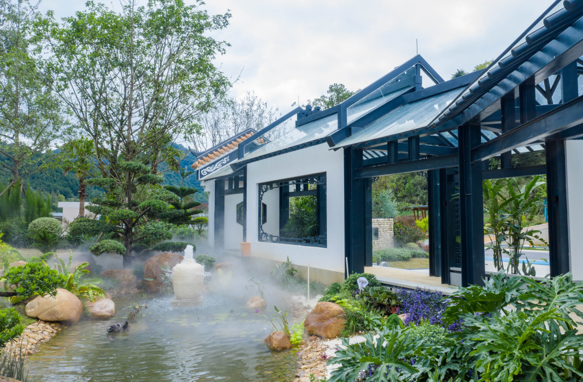 與嶺南廊院銜接的是南粵古驛道和飲水思源故事線節點,南粵古驛道是古代中國與南粵地區在文化與貿易交流的重要通道,與海上絲綢之路形成有重要的聯繫,該節點採用文化景牆窗口的形式展示廣東省在保護和復興南粵古驛道方面所做出的努力成果。從南粵古驛道踏上絲路體驗棧道,架空棧道就如航海線般蜿蜒曲折,沿途可竹林觀海、可霧裏探花、可休憩納涼,竹林觀海景點巧妙的利用園外借景的手法,打造多層次的遊園感受。