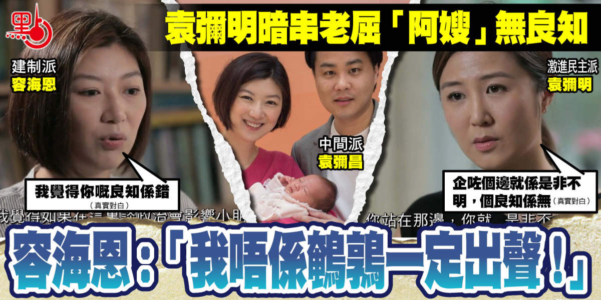 政圈「袁氏一家」成員各有不同政治光譜,噚晚 (19日) 播出嘅節目就以「細妹」袁彌明「為主」訪問咗呢家人,在片中新民黨立法會議員容海恩形容自己為愛國愛港的建制派;「老公」袁彌昌自稱中間派;「袁爸爸」袁弓夷就話自己「黃到金」;而大女兒袁彌望、小女兒袁彌明和丈夫林雨陽都係「黃絲」。容海恩說︰「嫁之前都知我係建制派啦。」過去與袁家上下相處,大家都有共識不談政治,即使聽到他們討論政治,她亦不會參與,會去斟茶避席。