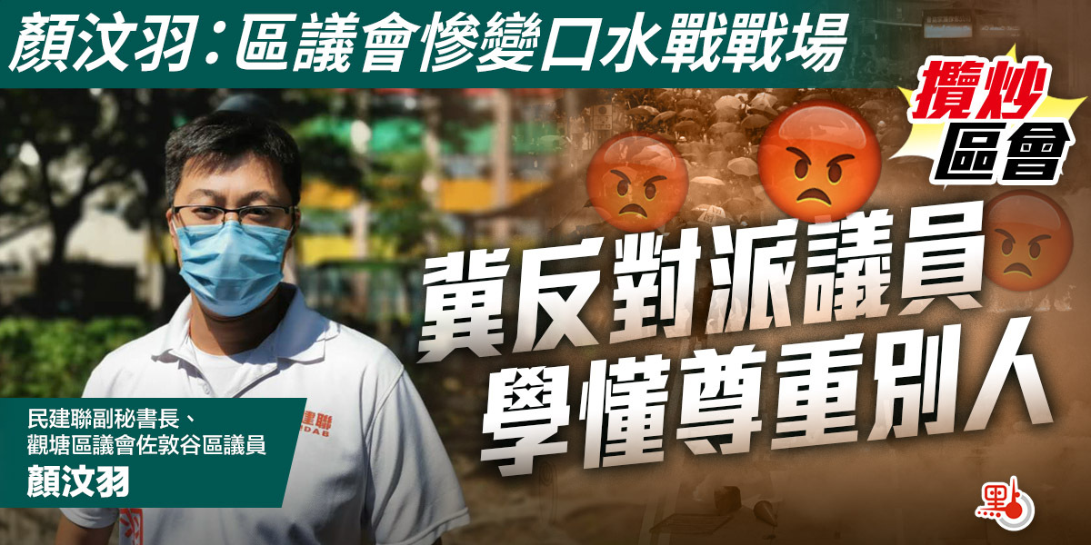 觀塘區議會過去長期由建制派佔絕對多數,亦是最多建制派區議員自動當選的區議會,可是去年黑暴事件,不少反對派取得多個議席,反對派議員的表現被不少市民詬病。一年即將過去,民建聯副秘書長、觀塘區議會佐敦谷區議員顏汶羽今日(21日)接受點新聞專訪表示,新任區議員經常將事件政治化,區議會慘變口水戰戰場場,影響運作及效率,而反對派經常以為自己的權力無限,增加合作困難,期望反對派可以學懂尊重別人的意見。