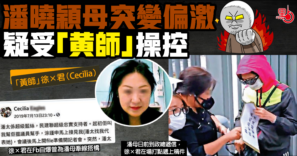 台灣殺人案疑犯陳同佳有意赴台自首,惟台方設卡阻撓令事件陷入僵局,長期未公開露面的潘曉穎母親上月突然高調接受多個黃媒專訪,更盲目向特區政府施壓。記者調查發現,潘母變得偏激非理性,原來疑是補習「黃師」徐×君在幕後從中搞鬼。徐×君曾為潘曉穎補習,她去年七月介入事件,聯繫涂謹申,操控潘母。