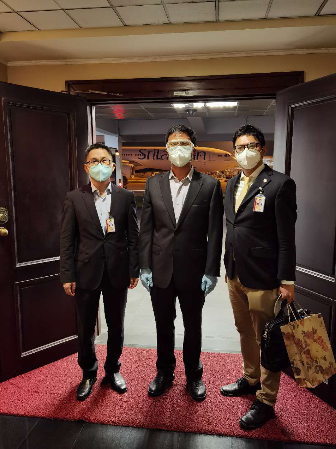 根據當前疫情形勢及兩國防疫要求,經雙方商定僅由駐斯使館必要工作人員前往接機。當天下午,斯里蘭卡總理府提前向使館送來鮮花和賀信,對戚振宏履新表示熱烈歡迎。