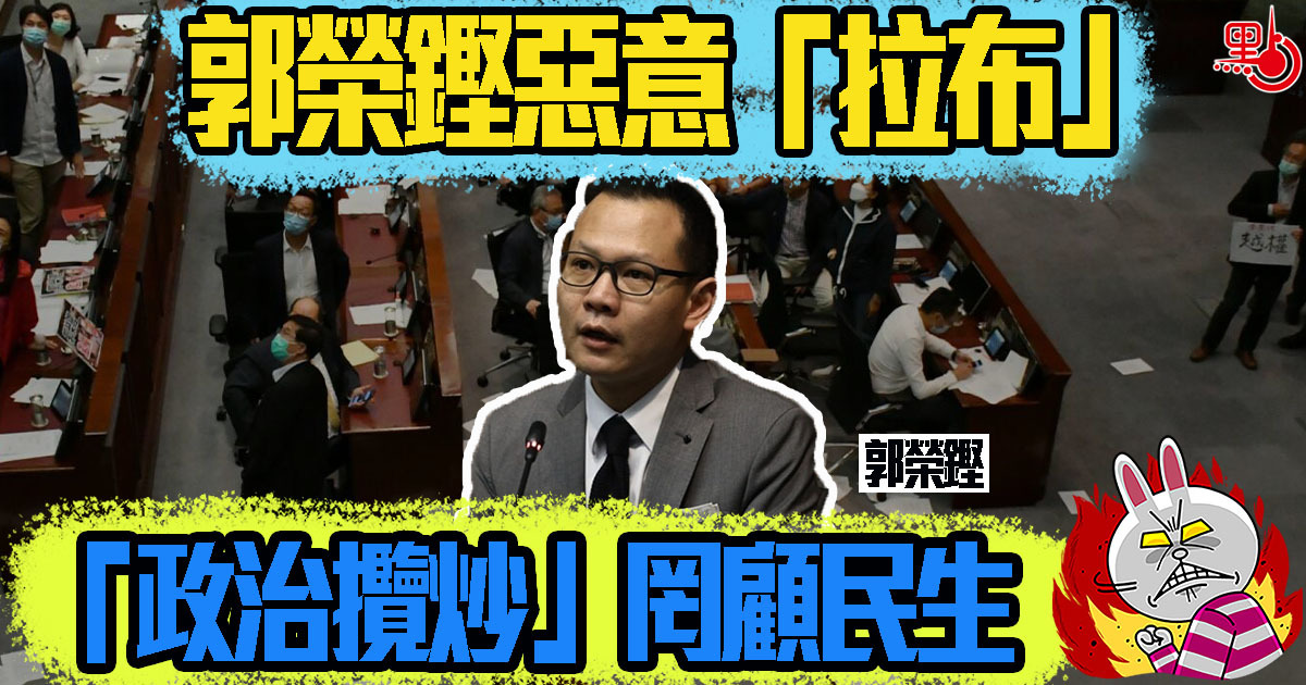 近年攬炒派議員「拉布」惡行手法層出不窮,導致立法會會期「一拖再拖」,嚴重影響立法會正常運作。攬抄派議員中號稱「拉布王」嘅郭榮鏗,响佢嘅把持下濫用主持內會正副主席選舉嘅權力,為一眾攬炒派提供「拉布」癱瘓立法會嘅大開方便之門,惡意放任議員一再提出動議並毫無限制地發言以拖延時間,歷時更長達半年,直到今年5月8日,共召開17次會議仍未能完成選舉程序,導致內會長期停擺,嚴重影響社會民生議案。對於郭榮鏗濫權及惡意「拉布」行為,市民大部份都「怒不可遏」,而且仲引來網民聲討話:「罪魁禍首郭榮鏗」、「癱瘓內會、害死香港,DQ(褫奪)郭榮鏗」。