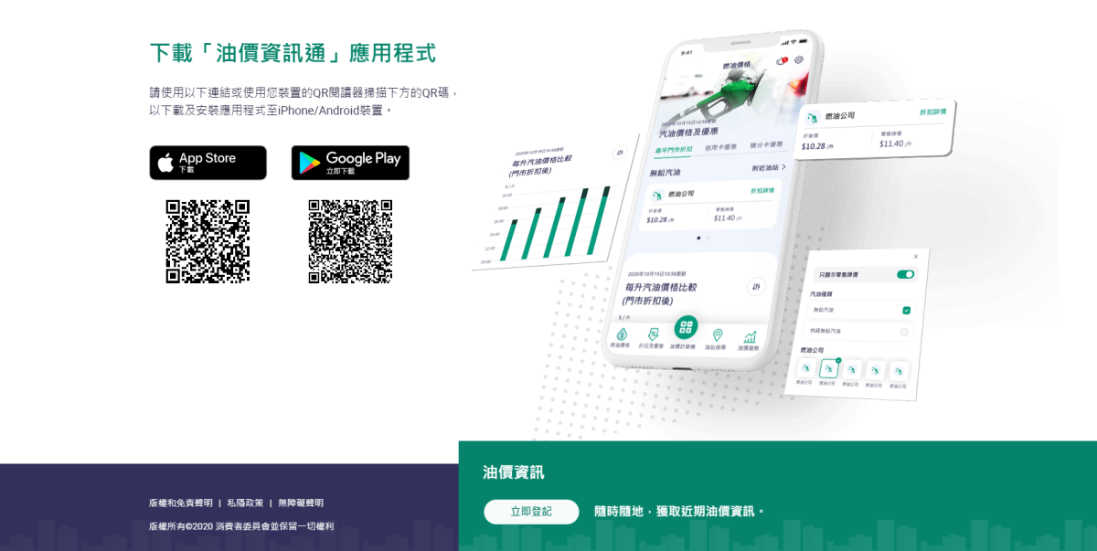 消委會推出「油價資訊通」手機應用程式,合併了原有的「油價計算機」及「柴油計算機」兩個應用程式,能即時顯示及比較各油公司的零售牌價與門市折扣後油價,並會以電郵或推送形式,通知用戶最新油價。