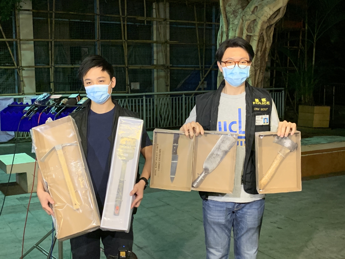 警方表示,早上11時許接獲一名行山人士報案,指在香港仔黃竹坑道1號的後山發現2名形跡可疑的男子,其中一人持刀在地上切割物件,兩人滿手鮮血。警方到場後,發現長1.3米的野豬屍體,被人割去頭部和劏肚,在野豬屍體附近檢獲相信與案有關的利器,包括刀、鋤頭和斧頭等。